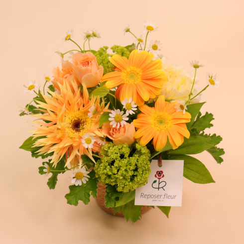 明るく前向きな気持ちになれるようなビタミンカラーのアレンジメントです。